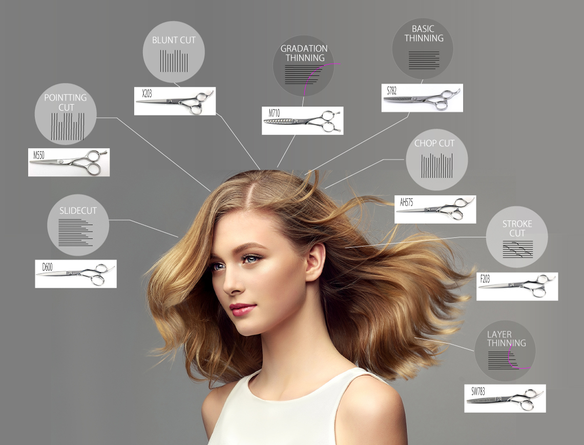 美を追求するスタイリストにふさわしい芸術性の高いハサミ、多様なご要望にお応えできる商品を取り揃えております。