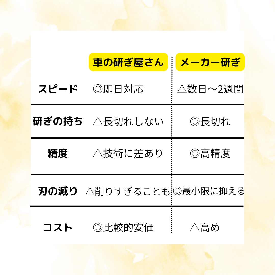 ・値段がやや高い:車の研ぎ屋さんに比べて高い傾向にある