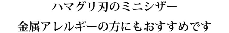 Mini scissors with clam blades. Recommended for people with metal allergies.